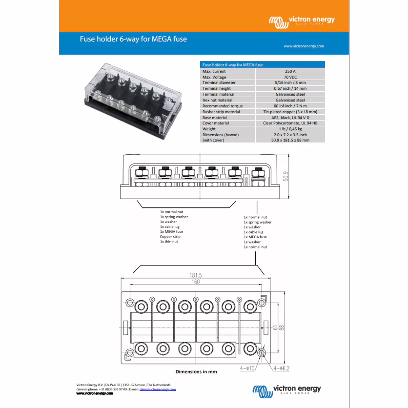 Victron Energy 6-Way Fuse Holder With Busbar for MEGA fuse